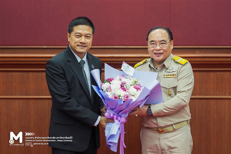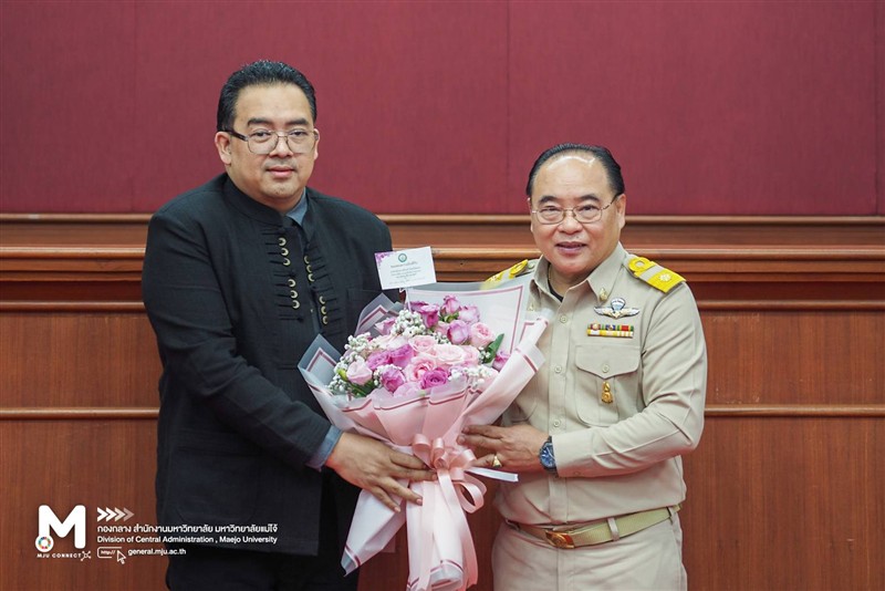 วันพุธที่ 17 ธันวาคม 2568 รองศาสตราจารย์ ดร. วีระพล ทองมา อธิการบดีมหาวิทยาลัยแม่โจ้ กล่าวแสดงความยินดีและมอบช่อดอกไม้ แก่