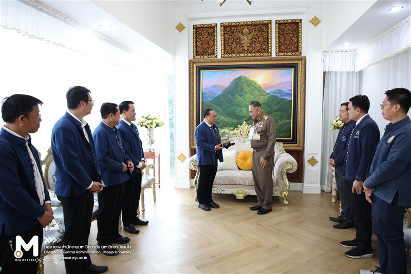 วันพุธที่ 4 กุมภาพันธ์ 2569 รองศาสตราจารย์ ดร.วีระพล ทองมา อธิการบดีมหาวิทยาลัยแม่โจ้ พร้อมด้วยคณะผู้บริหารมหาวิทยาลัยแม่โจ้ เข้าพบ พลเอก กัมปนาท รุดดิษฐ์ องคมนตรี เลขาธิการ และประธานกรรมการบริหารมูลนิธิโครงการหลวง เพื่อกราบขอพรเนื่องในโอกาสสวัสดีปีใหม่ พ.ศ. 2569 และหารือความร่วมมือด้านวิจัยและบริการวิชาการร่วมกัน