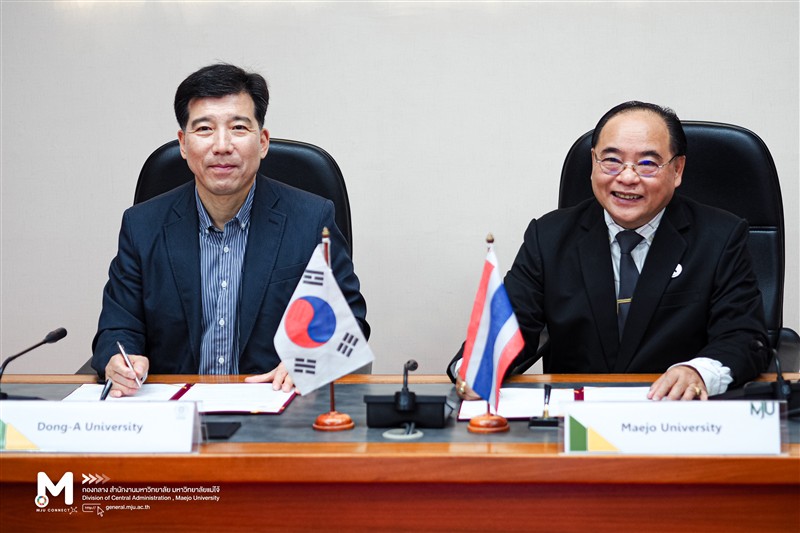 ในโอกาสมหาวิทยาลัยแม่โจ้ และ Dong-A University ประเทศเกาหลีใต้ ได้จัดพิธีลงนามความร่วมมือทางวิชาการด้านการส่งเสริมความร่วมมือด้านการศึกษาและบุคลากรระหว่างกัน
